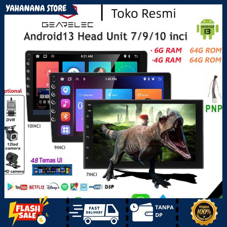 GEARELEC Head unit Android 7 9 10 inci 6 64G Carplay Android13 Dukungan WiFi GPS youtube 48 Tema