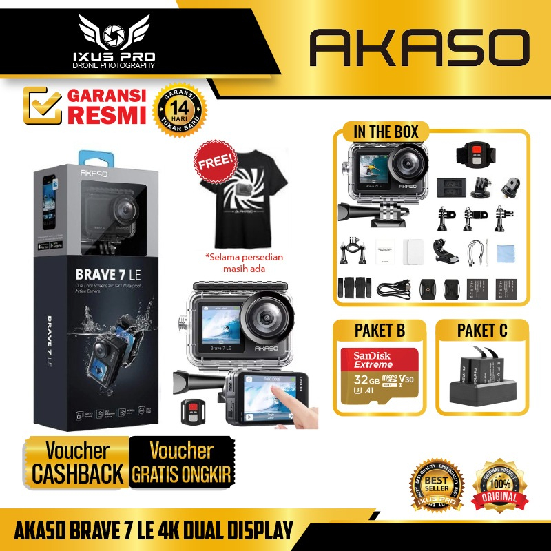 Akaso Brave 7 LE 4K Dual Display Action Cam Camera Brave7 LE RESMI