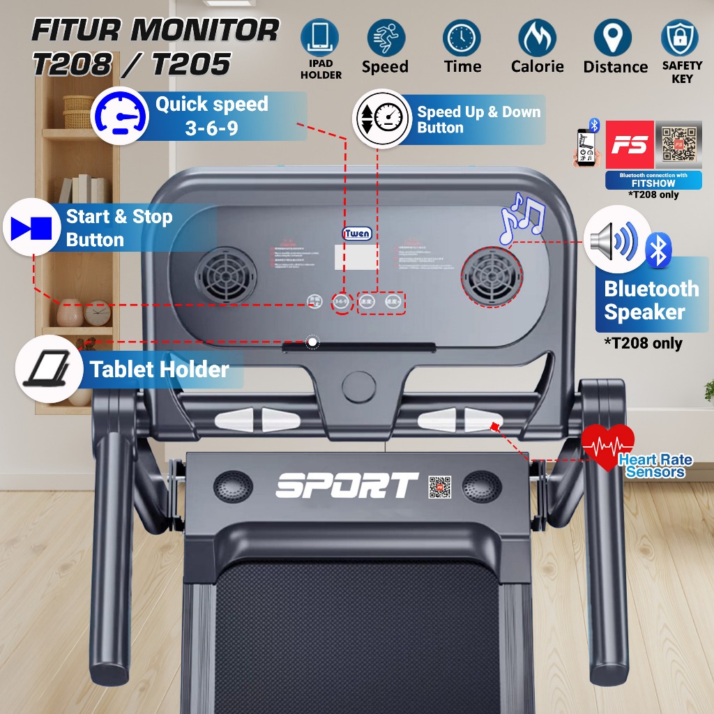 DISKON Twen T205 T208 Treadmill Elektrik / Treadmill Portable / Treadmill Electric Low Watt / Alat Olahraga