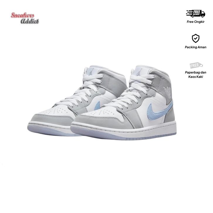 [Mall] Sneakers Nike Air Jordan 1 Mid Wolf Grey Allumunium 100% BNIB Global Market