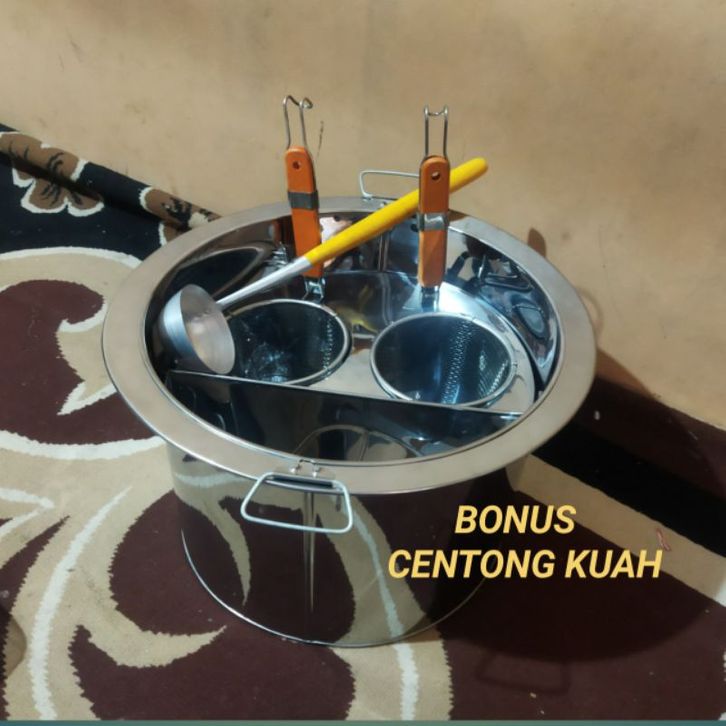 Tong Mie Ayam Panci Mie Ayam Bakso Stainless Steel Dandang Mie Kocok Dandang Bulat 2 Lubang