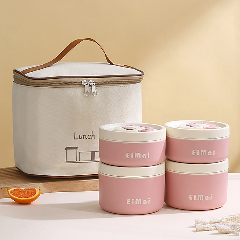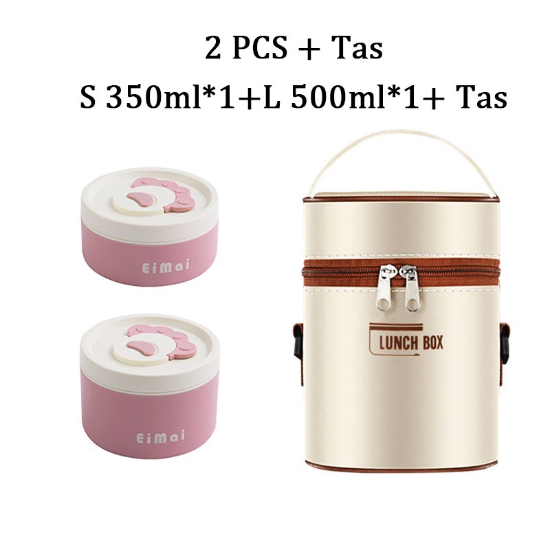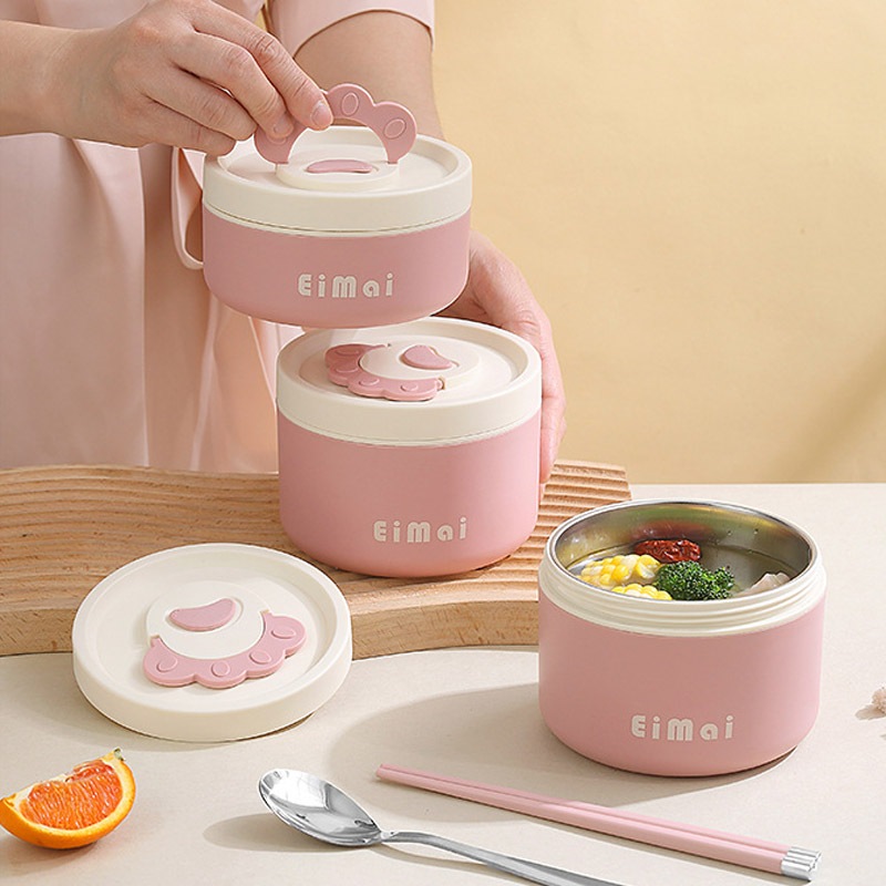 Kotak Makan Siang Kucing Lucu Merah Muda 304 Baja Tahan Karat Mangkok Stainless Steel 1 Set Kotak Makan Premium Mangkok