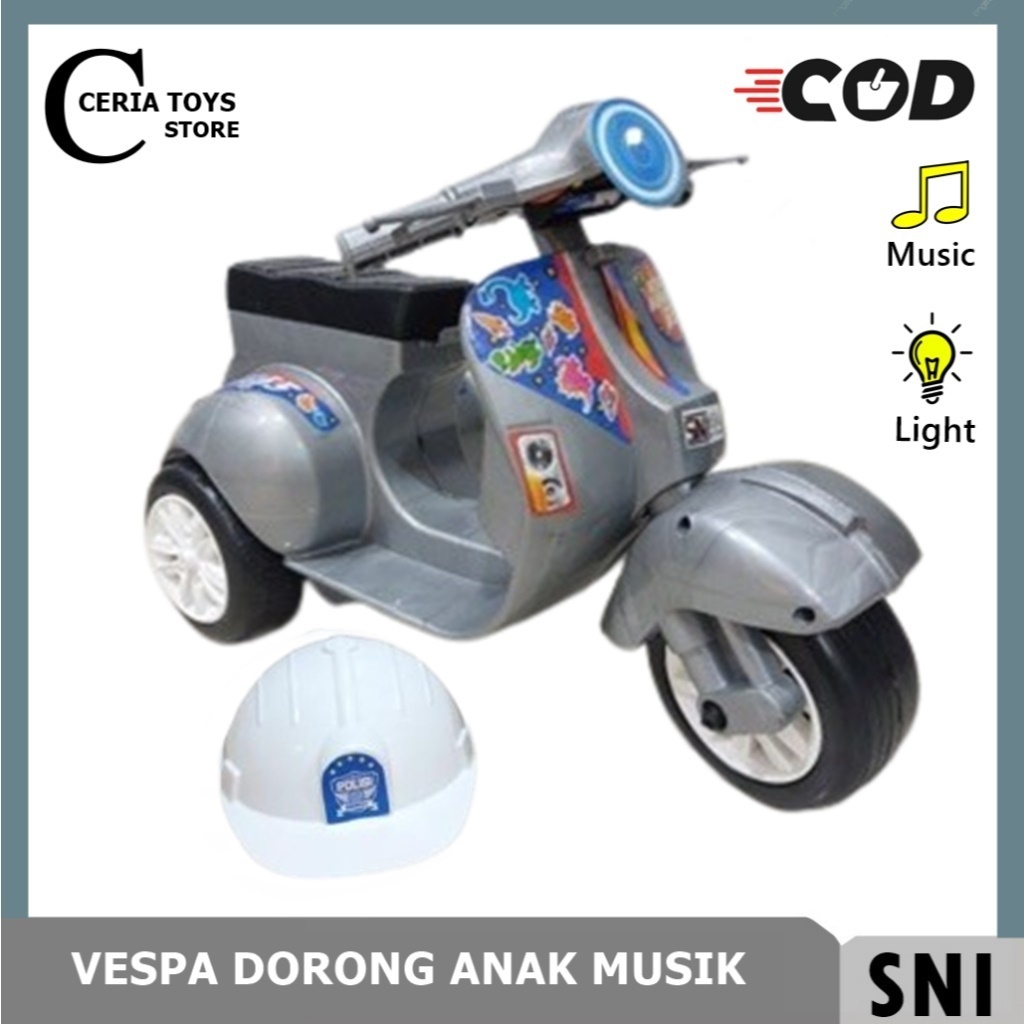 ( DENGAN MUSIK ) MAINAN ANAK MOTOR VESPA MINI CLASSIC - MINI VESPA CLASSIC -MAINAN MOTOR DORONG ANAK
