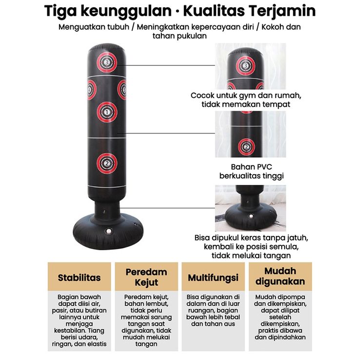 Samsak Tinju Berdiri Anak & Dewasa Model Tiup tinggi 160 cm dengan bahan PVC Standing Boxing Angin
