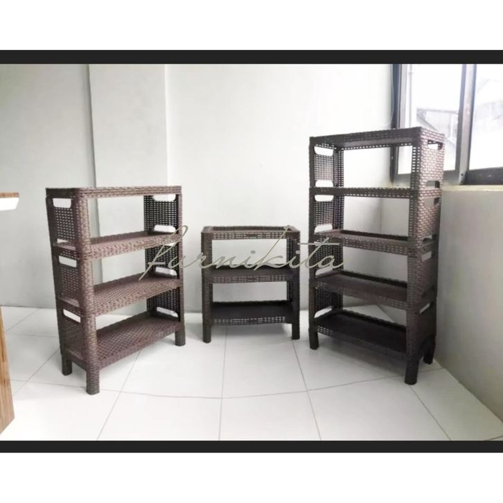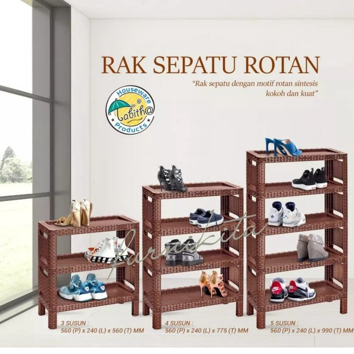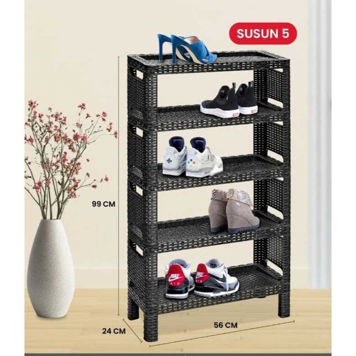 RAK SEPATU ROTAN PLASTIK TABITHA MOTIF ROTAN RAK SEPATU SUSUN SERBAGUNA