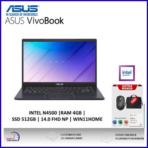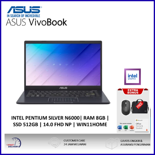 LAPTOP ASUS VIVOBOOK GO 14 E410KA PENTIUM SILVER N6000 512GB SSD 4GB FHD WIN11+OHS