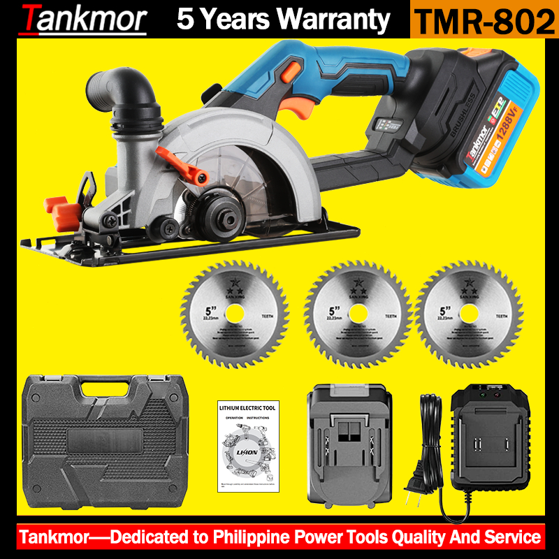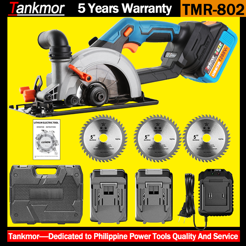 Tankmor TMR-802 5" Gergaji Lingkar Tanpa Kabel, Tanpa Sikat, 2 Baterai, Pemotong Marmer, Kayu, Plastik, Ubin Batu