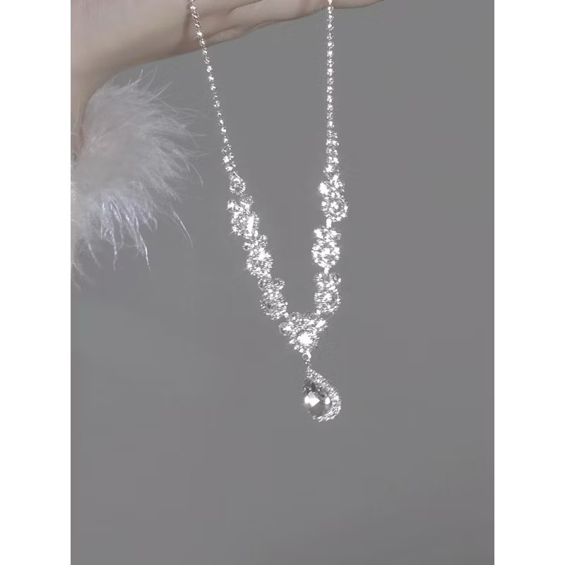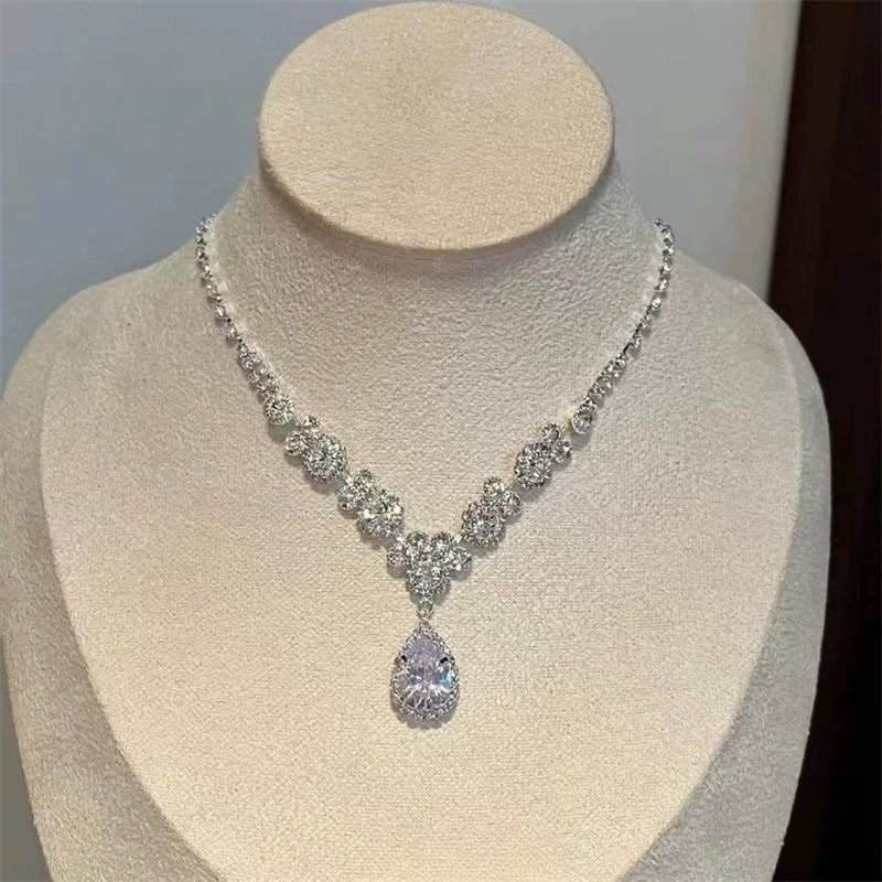 Kalungg Permata Zicron Luxurious Jewelry Necklace Glam Kalungg Pernikahan Kalungg Wanita