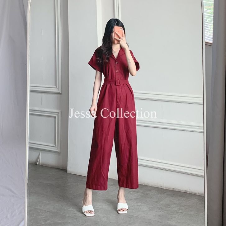 GROSIR Pieters Long Jumpsuit TH 1102 / 1113 KATUN OXFORD Overall Wanita Celana Panjang Lengan Pendek Motif Polos