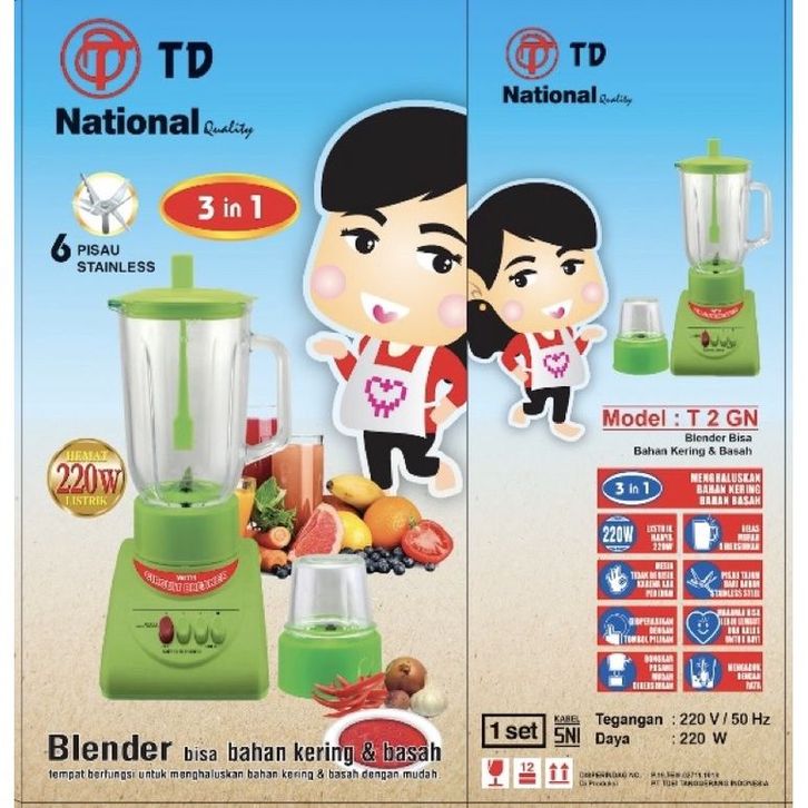 Blender Juicer Chopper Plastik Kaca 3 IN 1 Twindog Tipe T2GN ka-pasitas 1 Liter Foodgrade