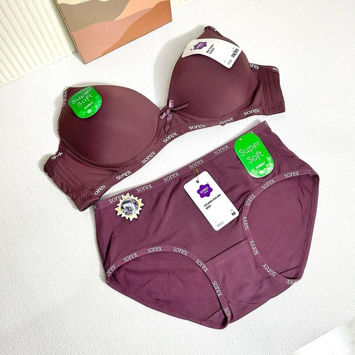 Murah BRA BH SET + CD SETELAN SOREX WANITA TANPA KAWAT BERBUSA 34-40 - Cream Bra 34 + cd m Promo