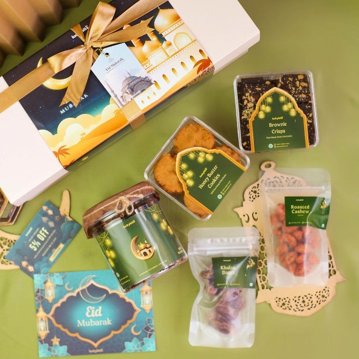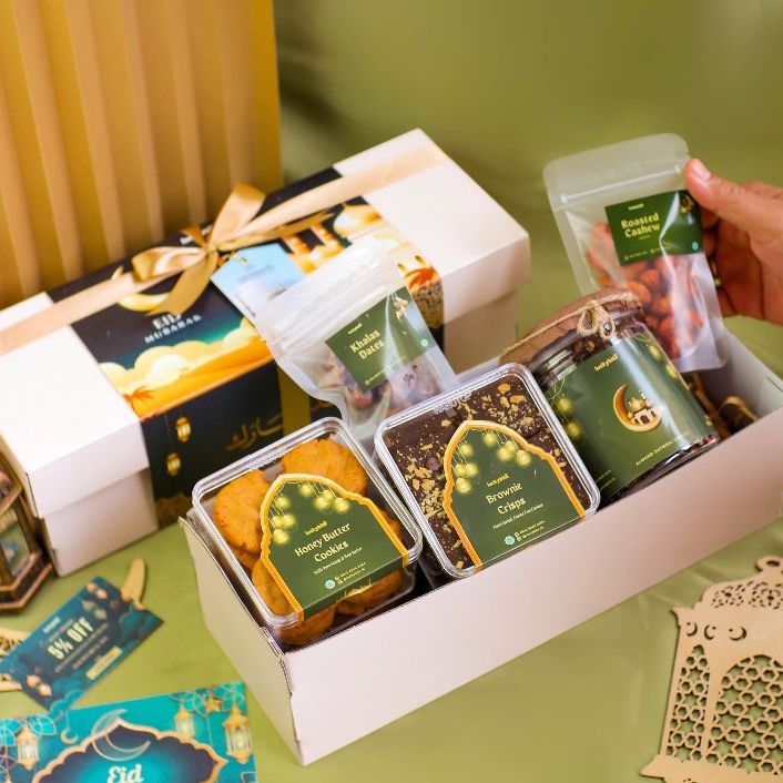 Hampers Lebaran Idul Fitri LuckyBite Parcel Ramadhan Semi Hardbox Isi Cookies, Kacang & Kurma Free Kartu Ucapan