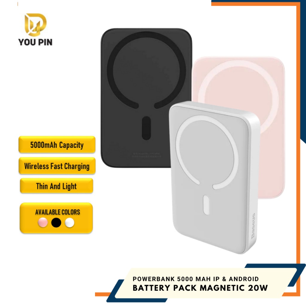 Powerbank Magnetic YOU PIN Magsafe 20W Fast Charging 5000mAh Wireless Battery Pack
