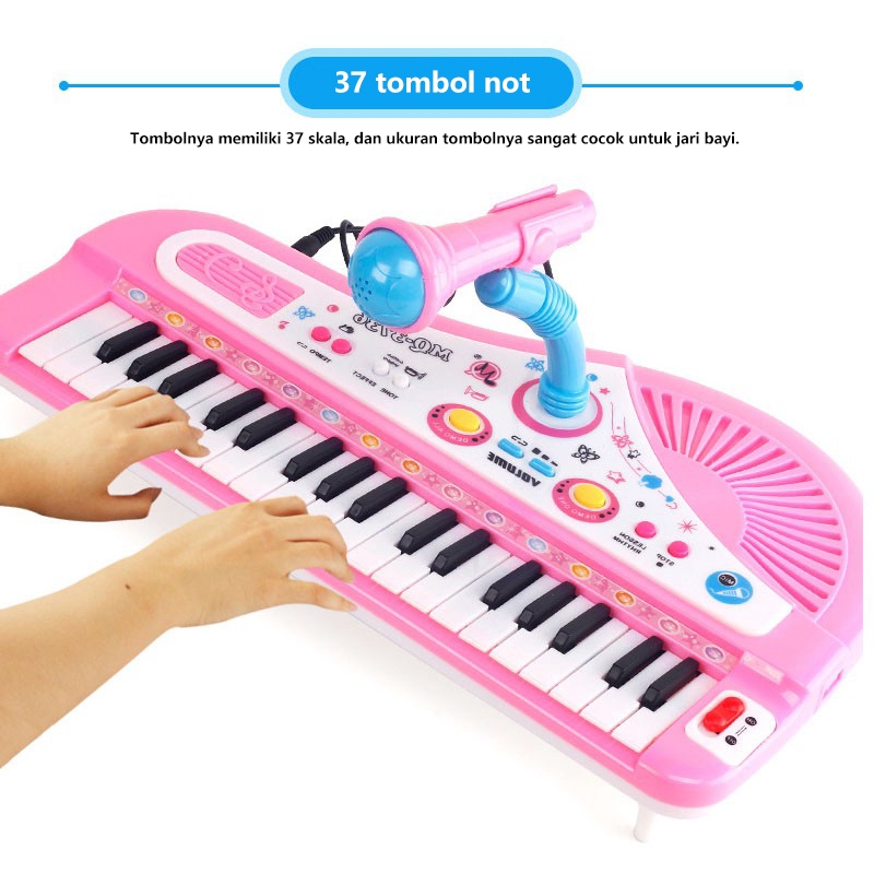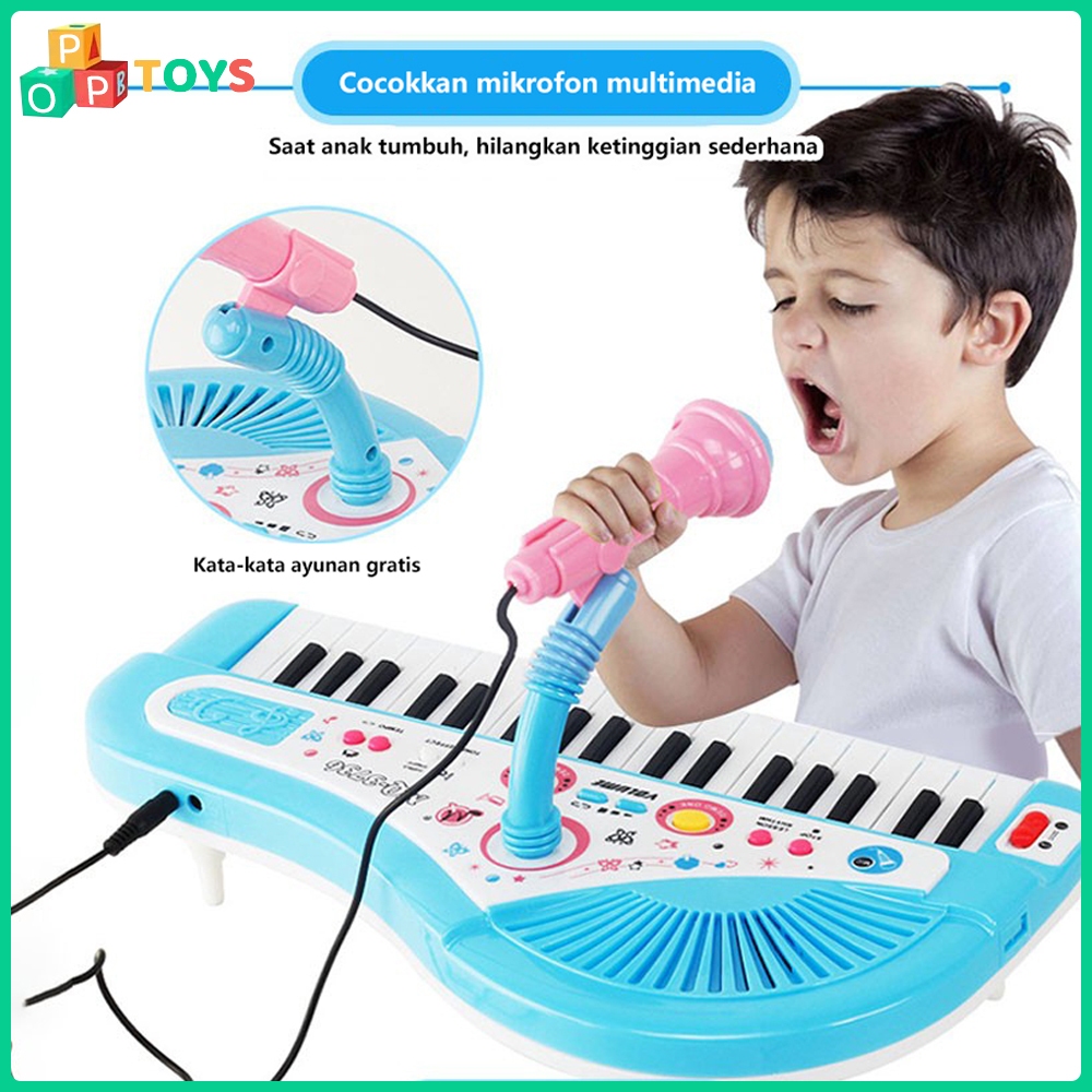 POPTOYS Mainan Musik Piano 37 Kunc Little Musician Piano MIC Keyboard Elektronik dengan Mikrofon untuk Mainan Anak-anak
