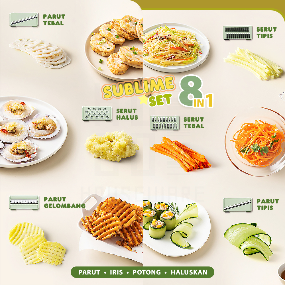 HUGO Parutan Sayur dan Buah 8 in 1 Parutan Serbaguna Pemotong Iris Sayur dengan Wadah Premium Quality