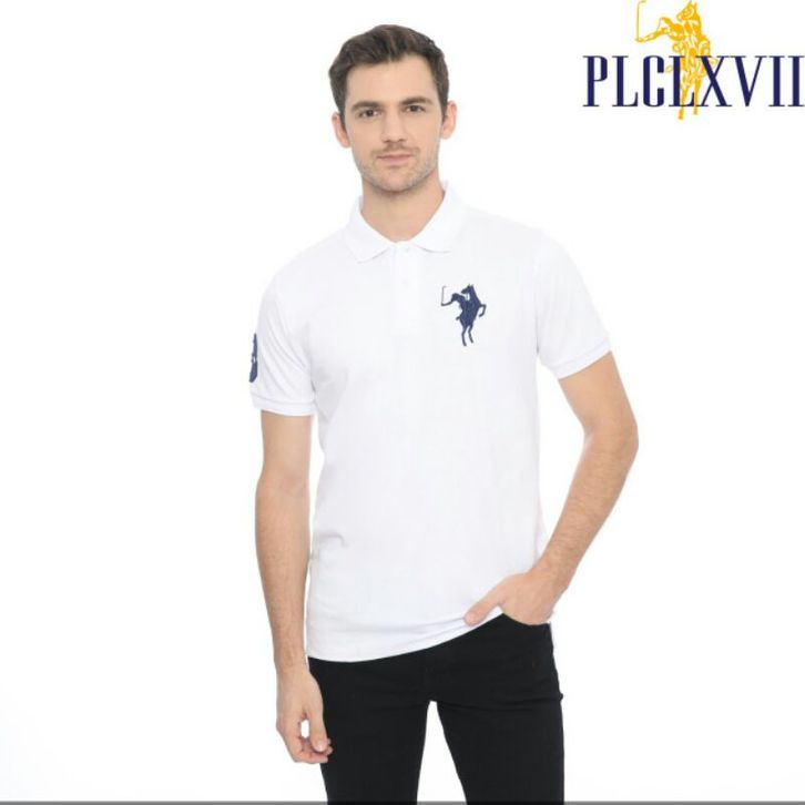 Polo Shirt Pria Katun-Spandex Bordir Kuda Besar