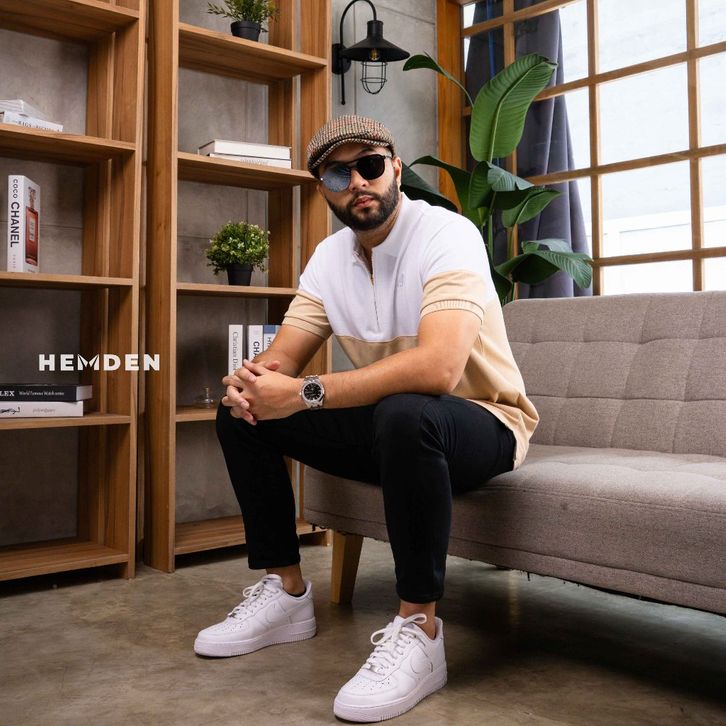 Kaos Polo Shirts Men's Zipper Two Tone Hemden - White Cream PL003