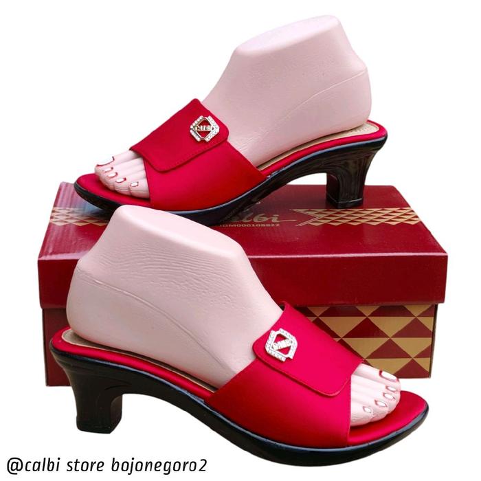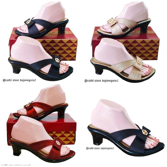 Sepatu Heels Wanita (( ORIGINAL )) Calbi Real Pict Sandal Heels Pesta Model Selop Wanita Hitam Krem