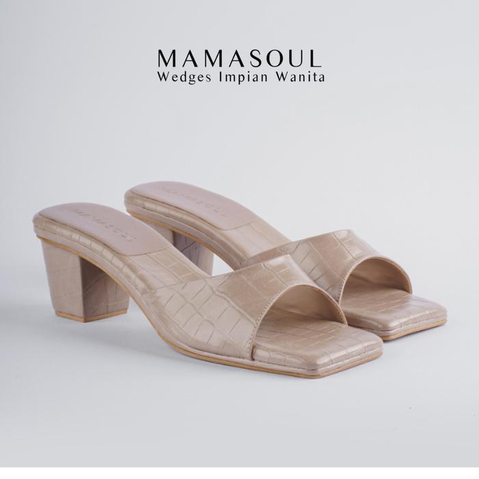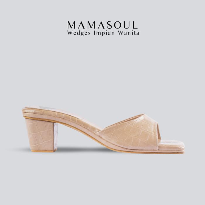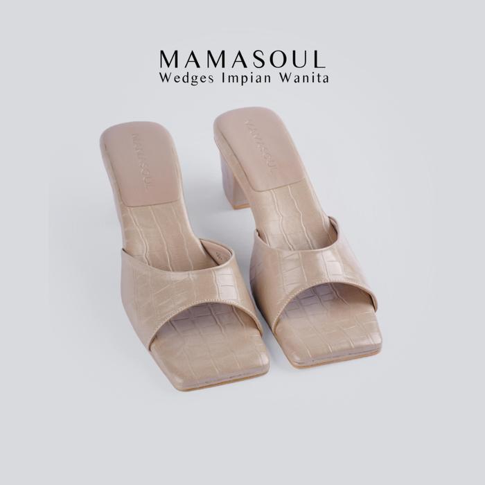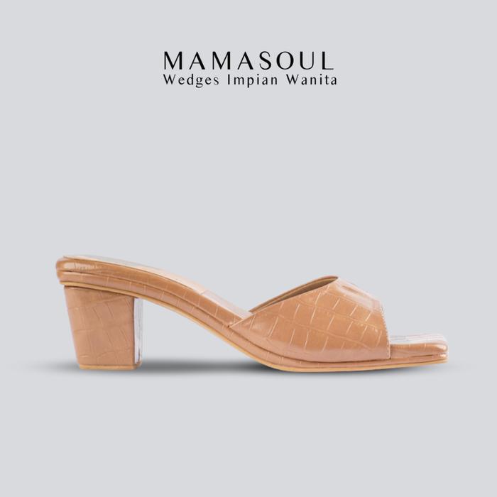 Sepatu Heels Wanita MAMASOUL Heels Emma - Sandal Wanita Croco Terbaru Sendal Block Heels Hak Tahu