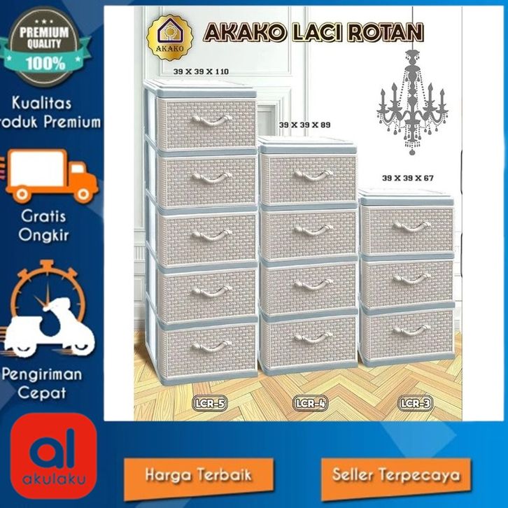 AKAKO Lemari Laci Plastik motif Rotan susun 3 4 5