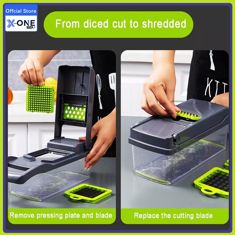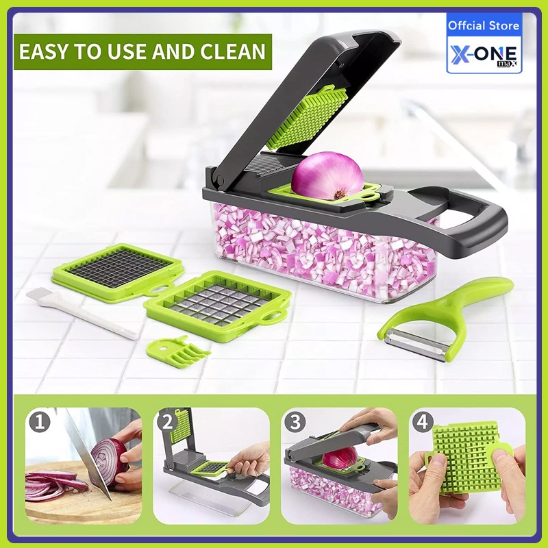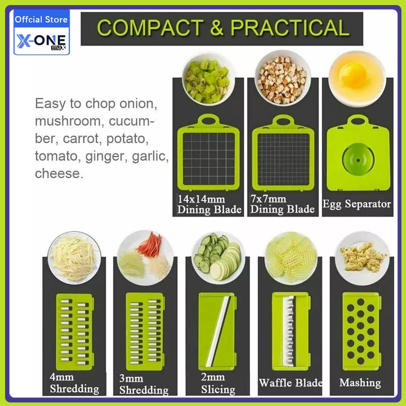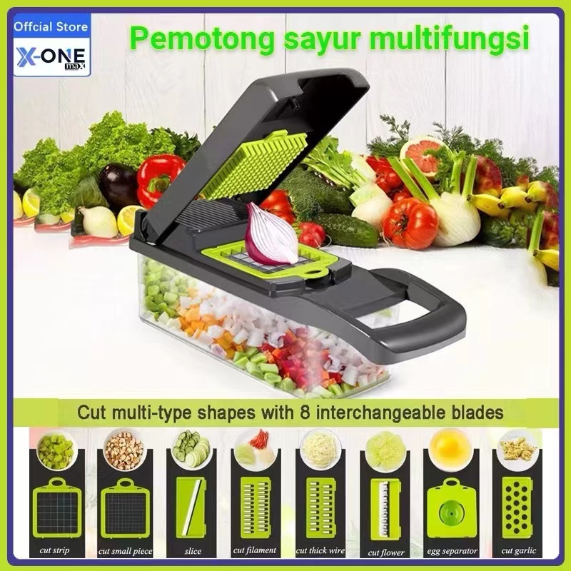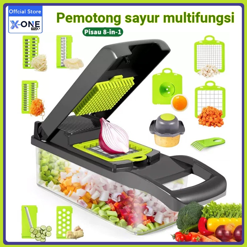 X-one Alat Pemotong Sayur Multifungsi, Pemotong dan Parutan Buah Sayur 8-in-1