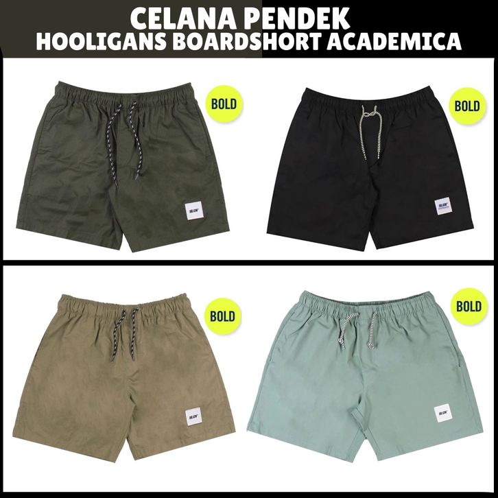CELANA PENDEK PRIA HOOLIGANS BOARDSHORT ACADEMICA - BLACK - STONE GRAY - OLIVE - BROWN - SAGE GREEN