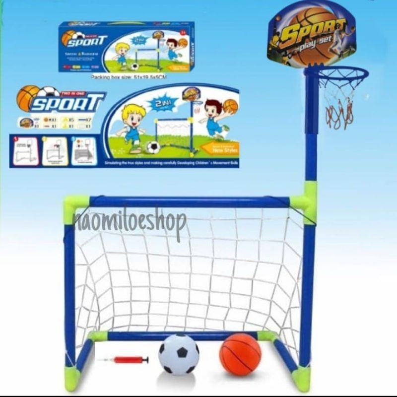 mainan anak gawang sepak bola ring basketball soccer foot ball 2in1 cars edition