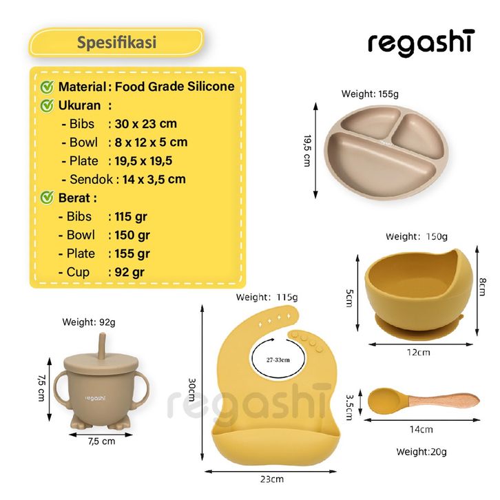 Rehi Tempat Makan Bayi Silikon | Alat Makan Bayi Silikon | Baby Set Completed Tableware