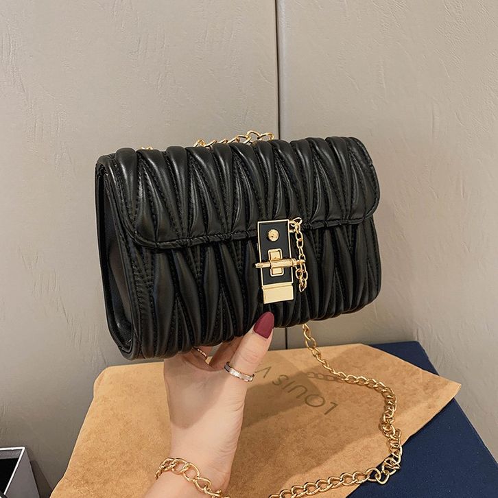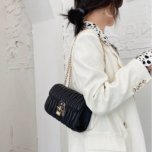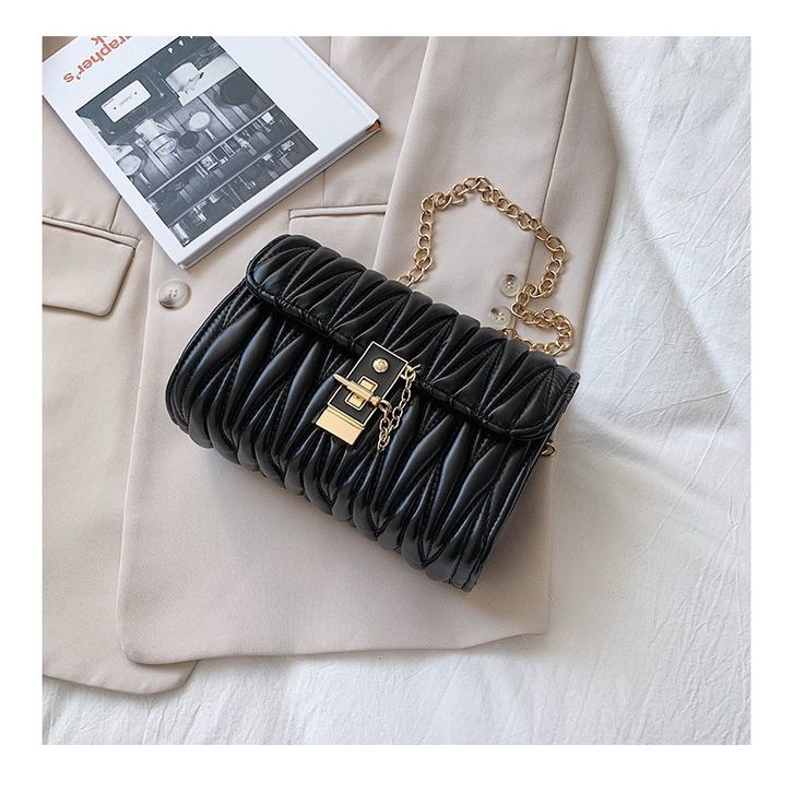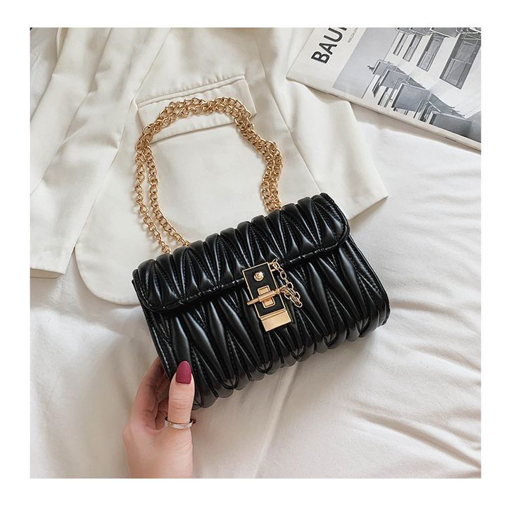 TAS SELEMPANG WANITA KULIT HITAM RANTAI PREMIUM FASHION PESTA KOREA MURAH ELIAS TA254B5 BATAM anakc