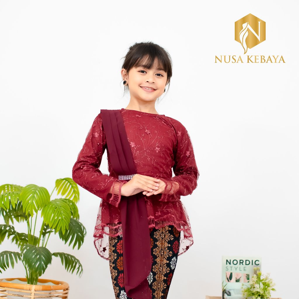 Atasan Baju Kebaya Anak Perempuan Umur 3 4 5 6 7 8 9 10 11 12 Tahun Bahan Brukat Tile Bordir Mutiara / Kebaya Wisuda TK