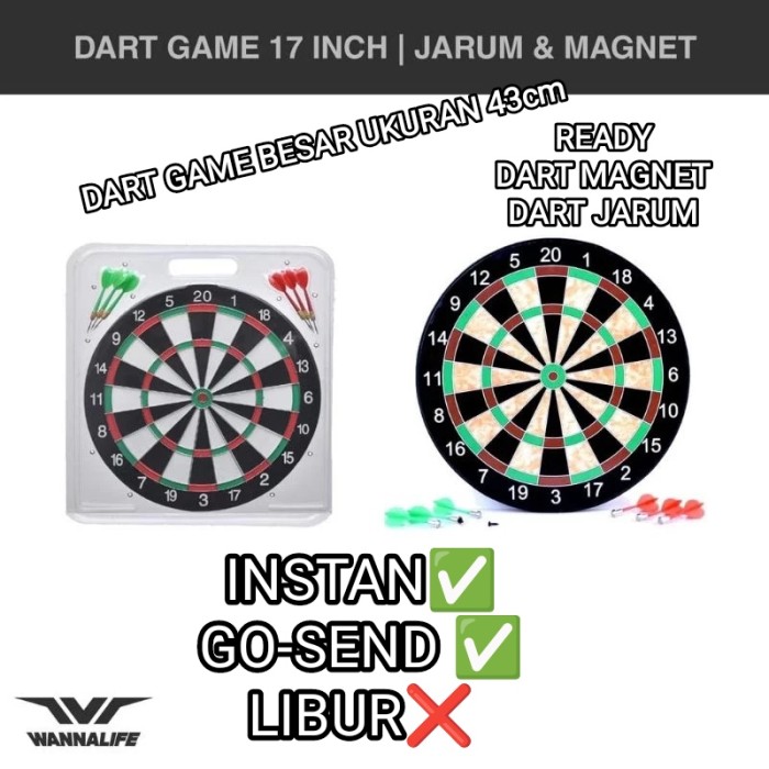 PROMO TERBATAS DART GAME BESAR 17INCH SIZE 43CM DARTBOARD PAPAN LEMPAR PANAH WANNAFIT DART MAGNET