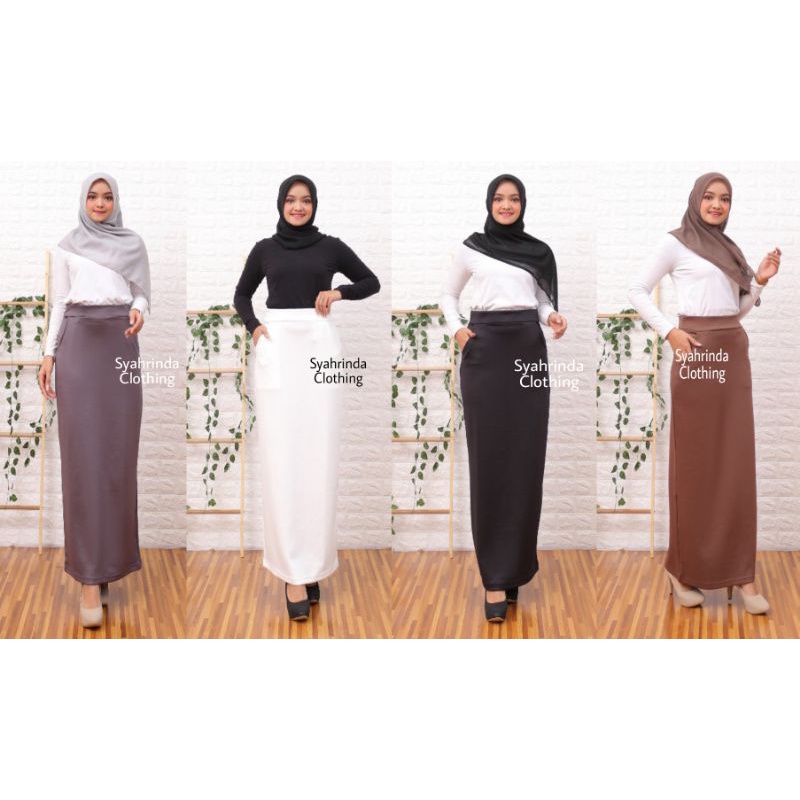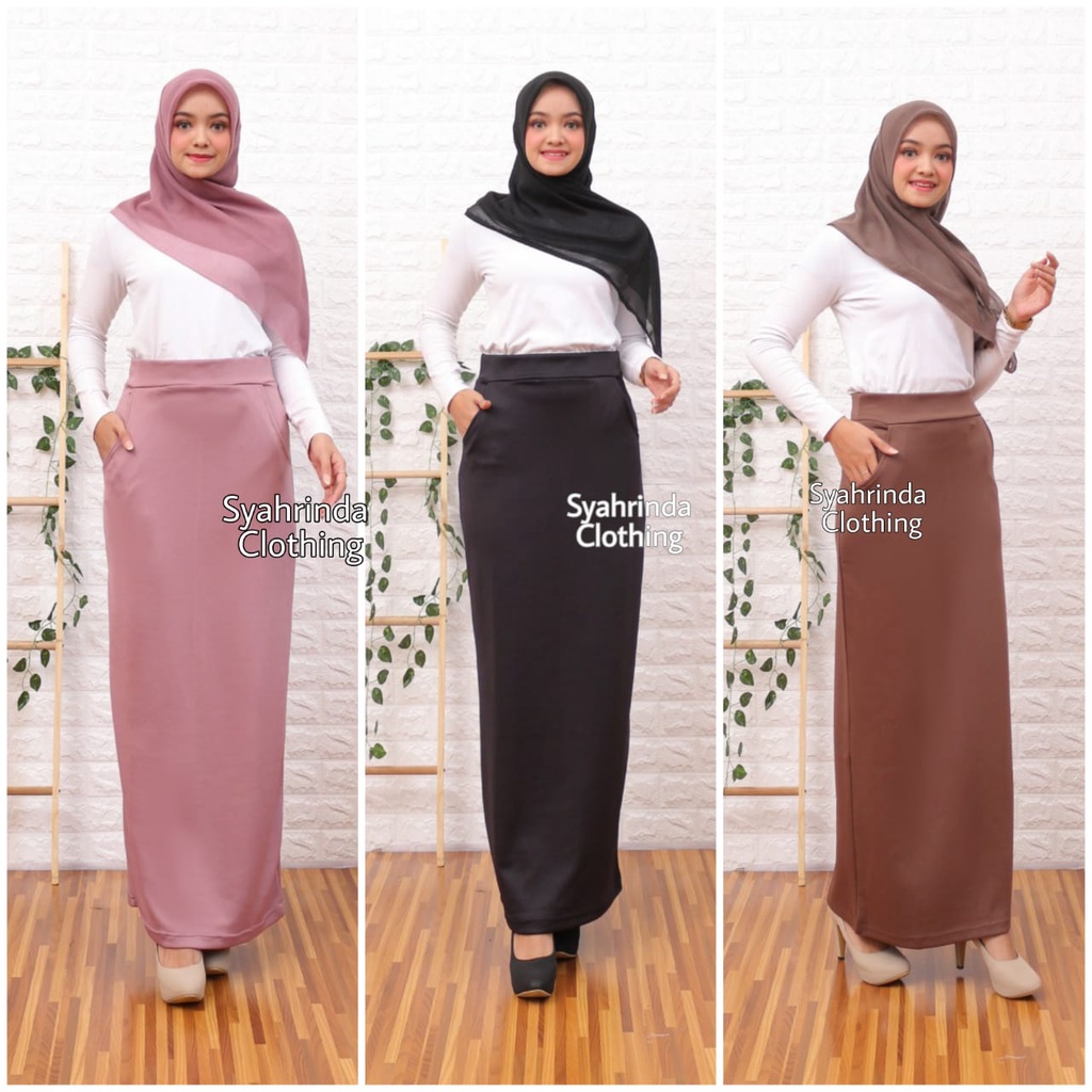 Rok Span Panjang Kerja Polos Wanita Scuba Premium Bawahan Formal