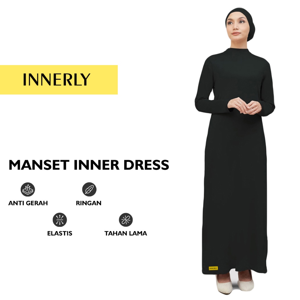 INNERLY Inner Dress Lengan Panjang Wanita Manset Gamis Daleman Baju Rayon