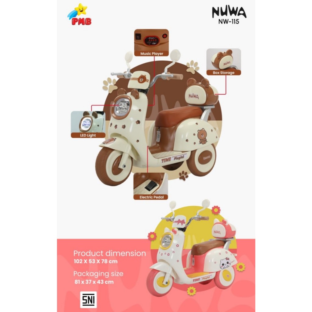 Motor Aki Mainan Anak PMB NUWA NW115 Vespa Kitty 6V4ah Power 380 Watt