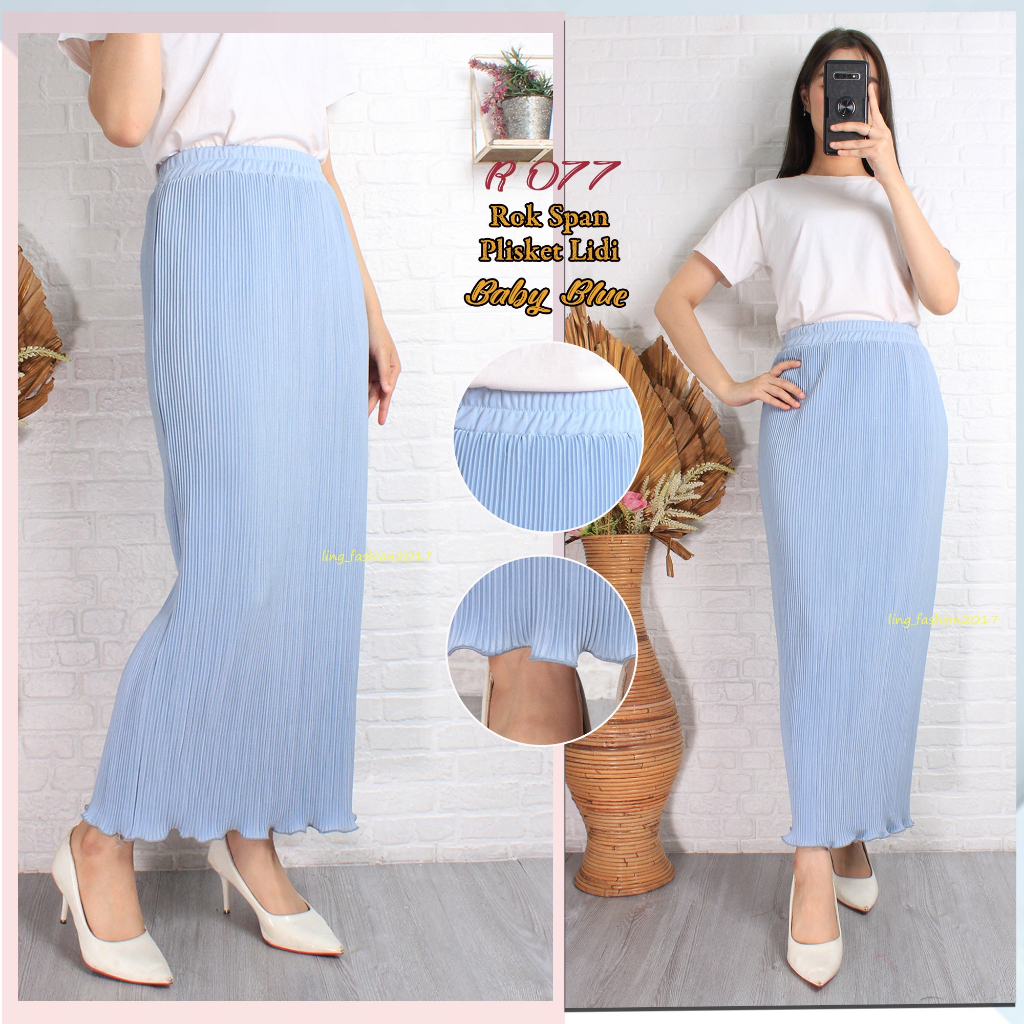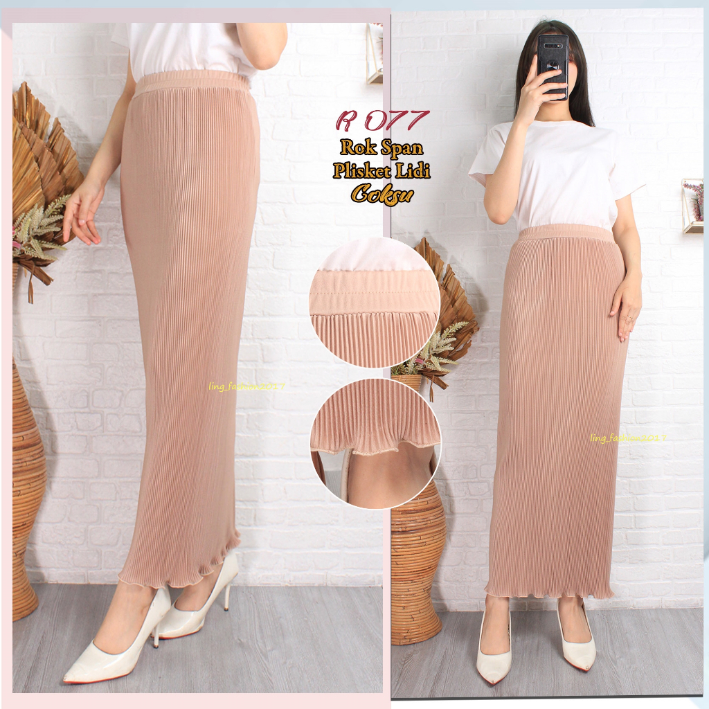 Rok Span Plisket Lidi Wavy Panjang/ Rok Span/ Rok Plisket/ Rok Wavy/ Rok Span Wavy/ Rok Panjang/ Rok Panjang Highwaist/