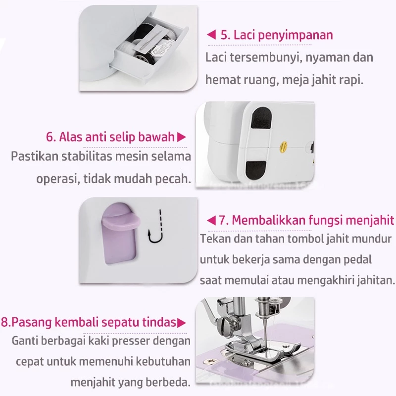 Mesin Jahit Mini Portable LED 705 12 Stitch Pola Pakaian Jahit Tangan