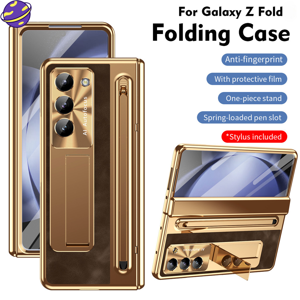 Folding ZFold6 Stand Casing with Pen and Film Phone Case Samsung Galaxy Z Fold 6 5 4 Hinge Protective Case