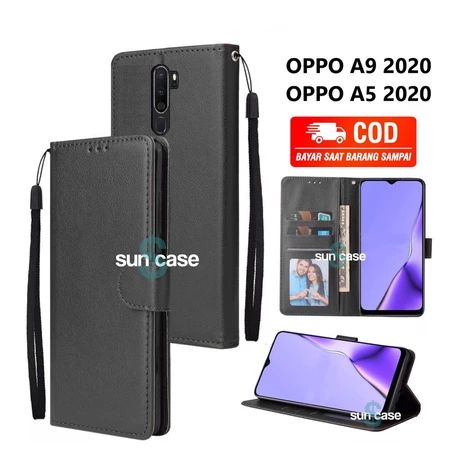 Casing OPO A9 2020 / A5 2020 model flip buka tutup case kulit ada tempat foto dan kartu juga tali hp flip cover