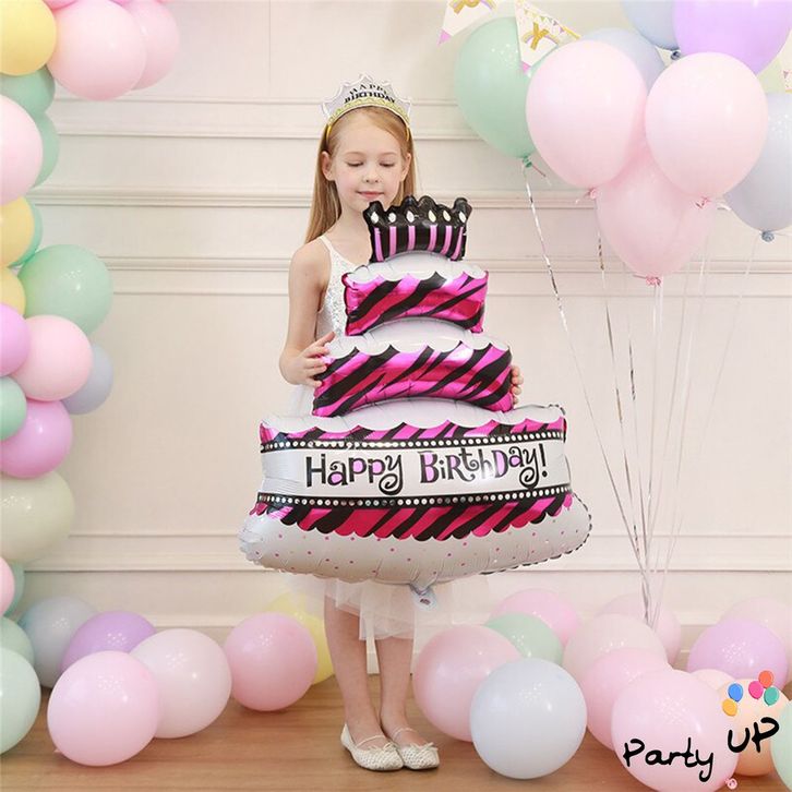 Balon Karakter Kue Ulang Tahun Cake HBD Pink Biru
