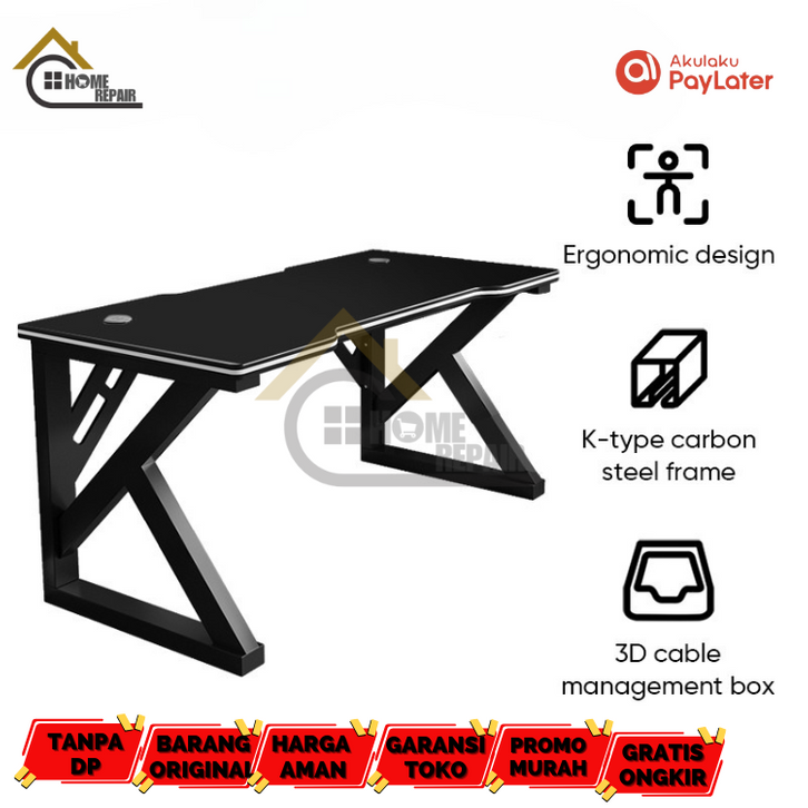 MEJA GAMING / Meja Komputer / Gaming Table Hitam Box Kabel E9151X PROMO MURAH