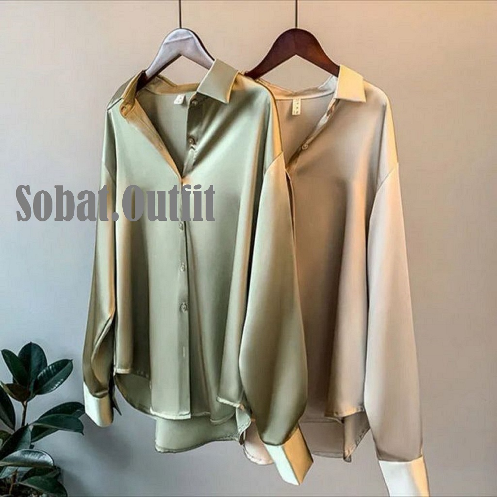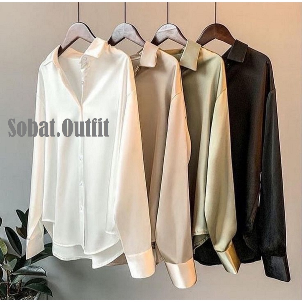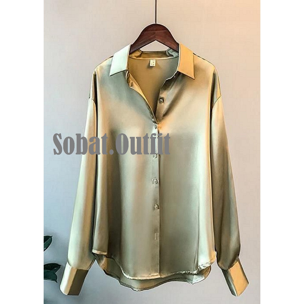 Kemeja Wanita Satin Kemeja satin Oversize wanita lengan balon Ld 110-130