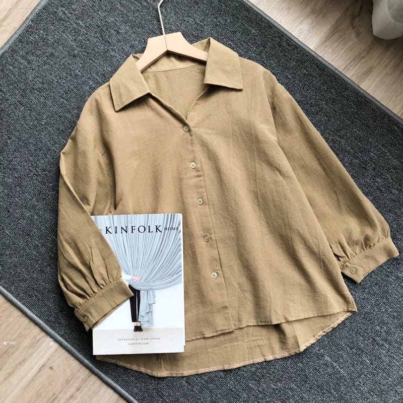 Vola Shirt | Kemeja Wanita Linen Vintage - Blouse Lengan balon - Kemeja Kerja Wanita