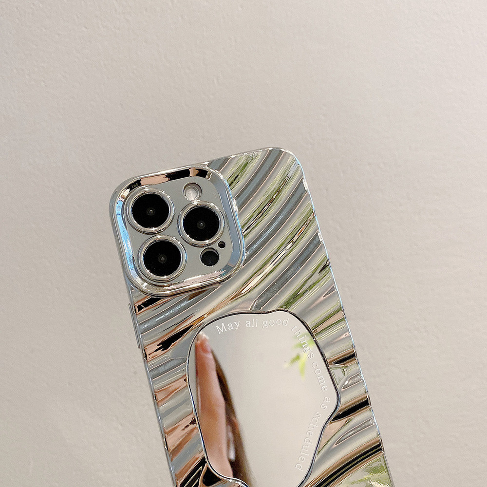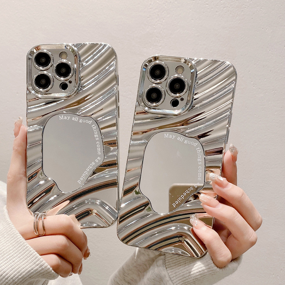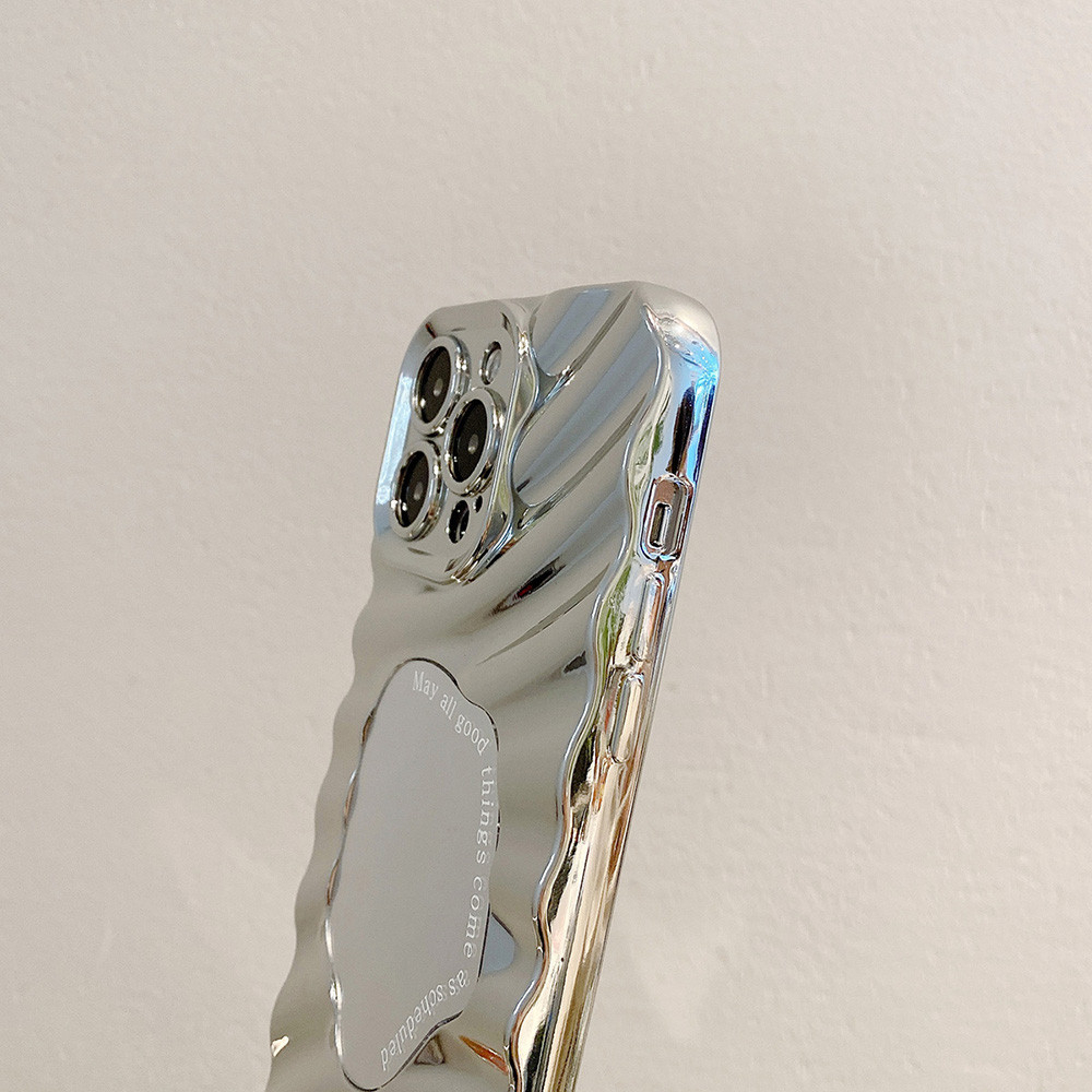 Casing iPhone Silver Wavy Mirror Quotes Case Untuk iPhone 16 11 13 15 Pro Max XR XS Max 12 14 Pro Max 14 15 Plus 6 8 7 P