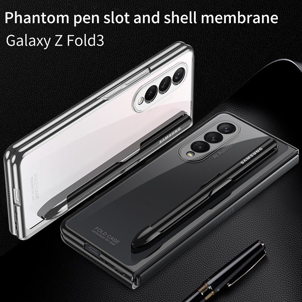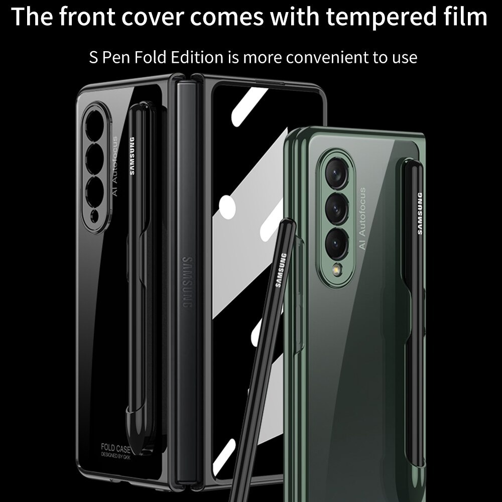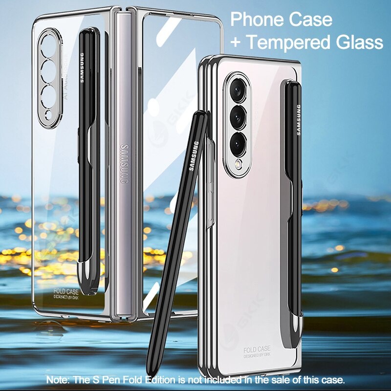 (FLASH SALE)Case Gkk Original Samsung Galaxy Z Fold 3 5G 2021 Crystal List Case Plating With Pen Holder and Front