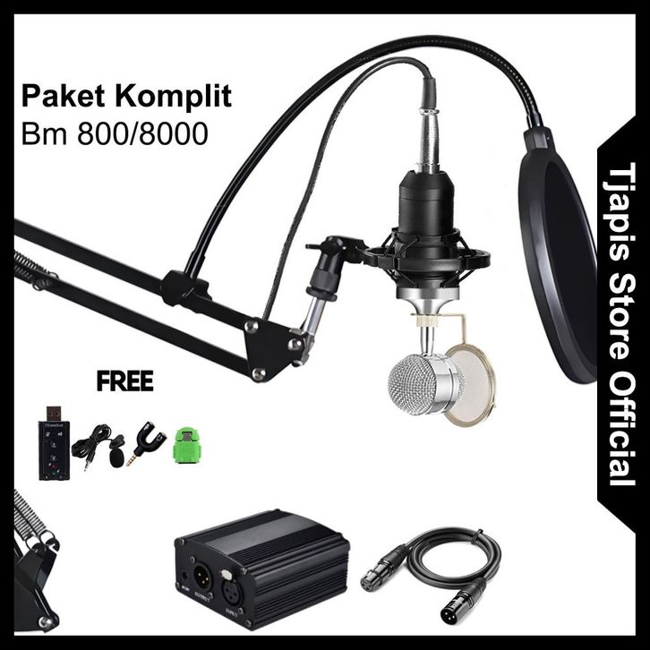 PAKET KOMPLIT MIC CONDENSER STAND ARM BM 800 BM 8000 ORIGINAL TAFFSTUDIO + PHANTOM POWER + XLR CABLE