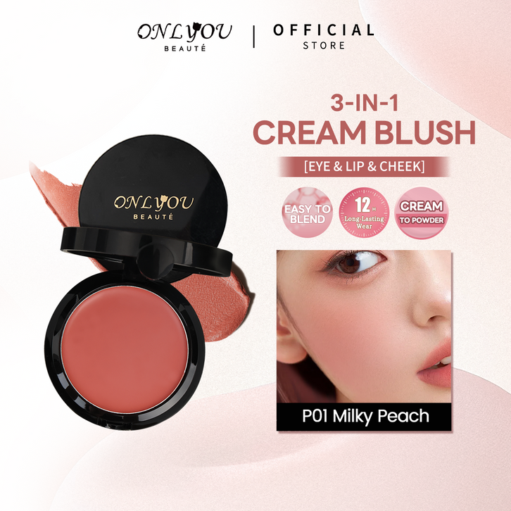 【NEW LAUNCH】ONLYOU Fluffy Cream Blush 3 in 1 Multi-useful Powder Blush 12h Long-Lasting Makeup