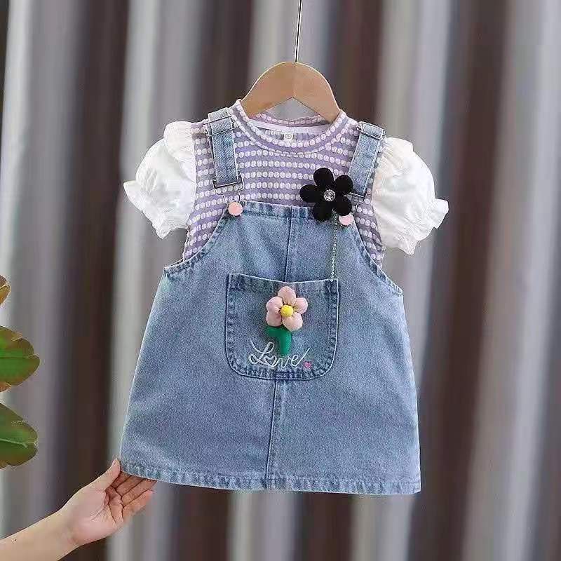 Overall anak perempuan baju kodok jins anak perempuan baju kodok 2in1 rok jins 1-4 thn