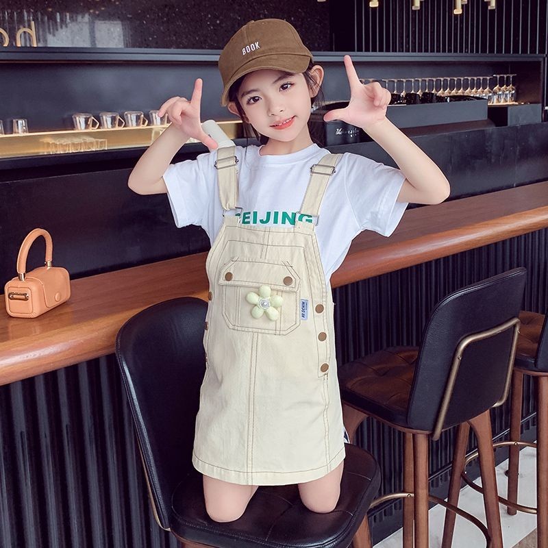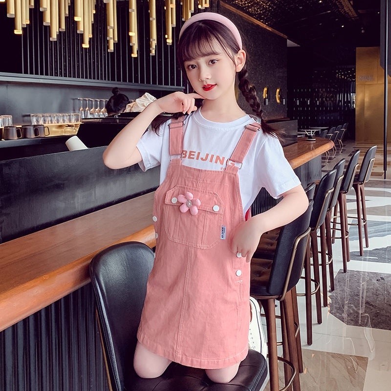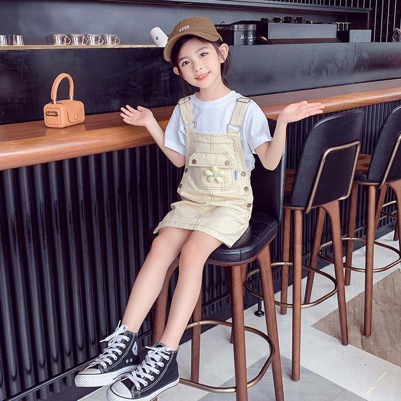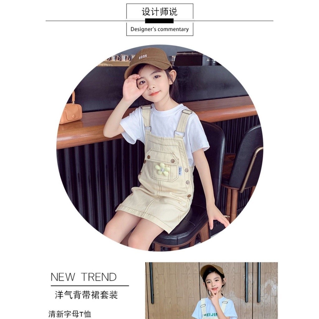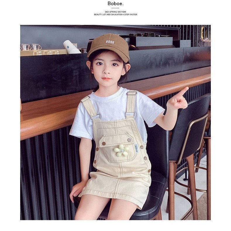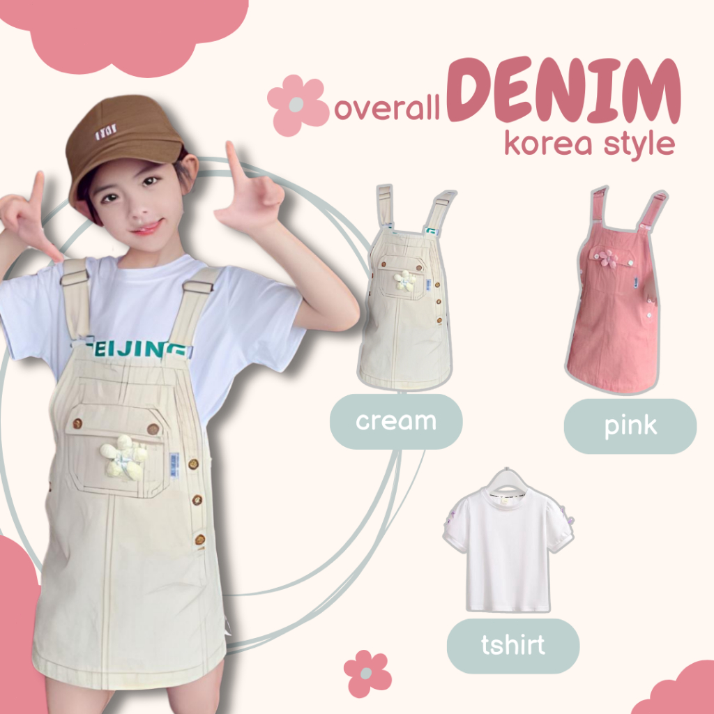 Funtastees Baby 2-12 Tahun Baju Overall Bunga Anak Denim Jeans Flowers Rok Perempuan Manis korea style
