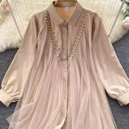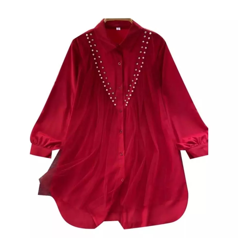 SHAKIA Pakaian wanita Muslim Tunik Atasan Kemeja wanita mutiara