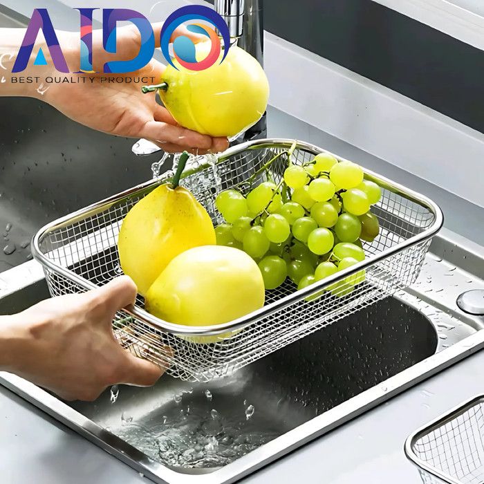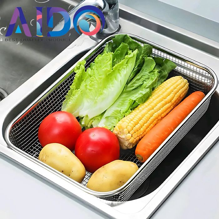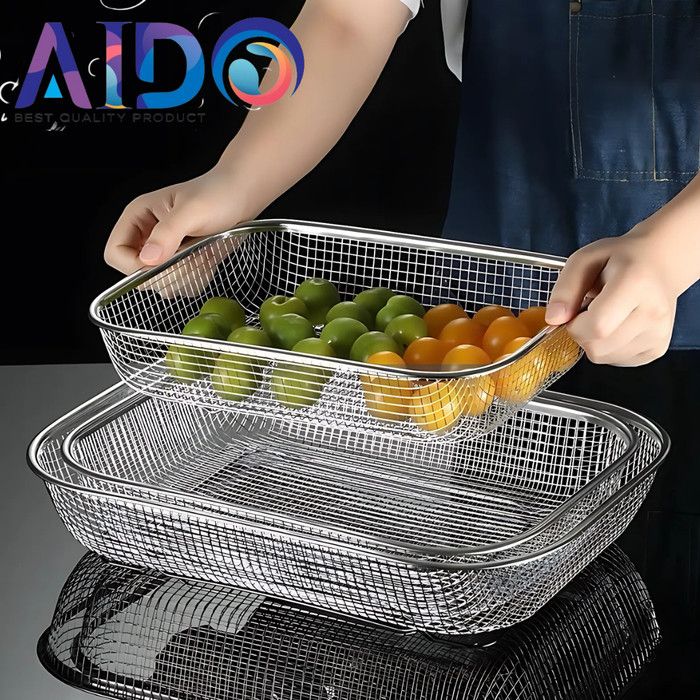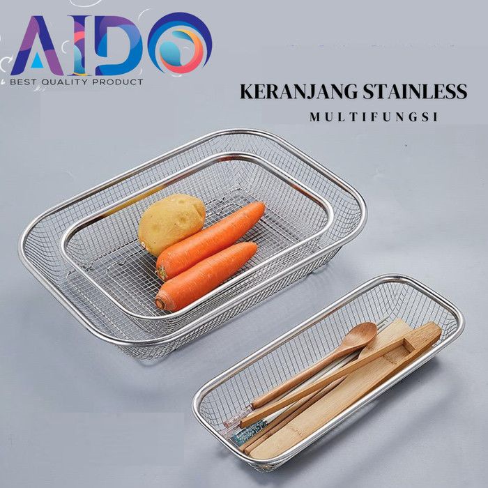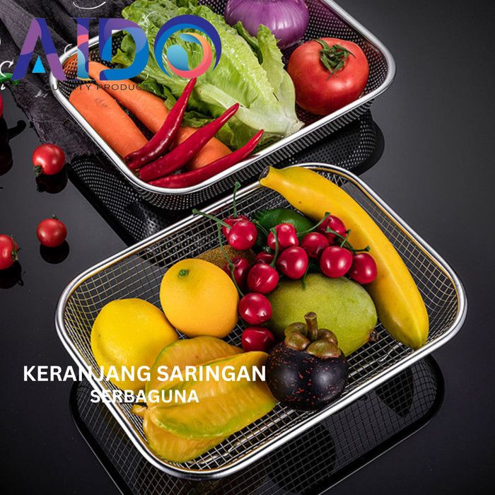 Promo Keranjang Saringan Baskom Rectangle Strainer Tirisan Stainless Steel - 31CM X 13CM Promo